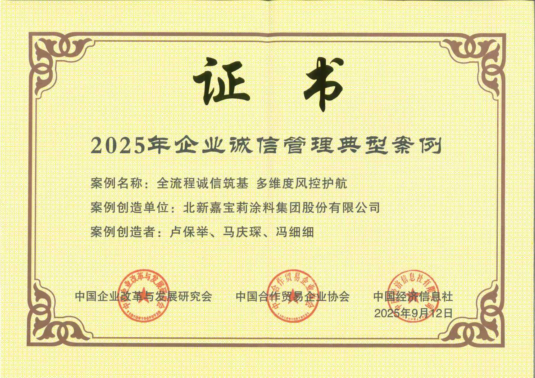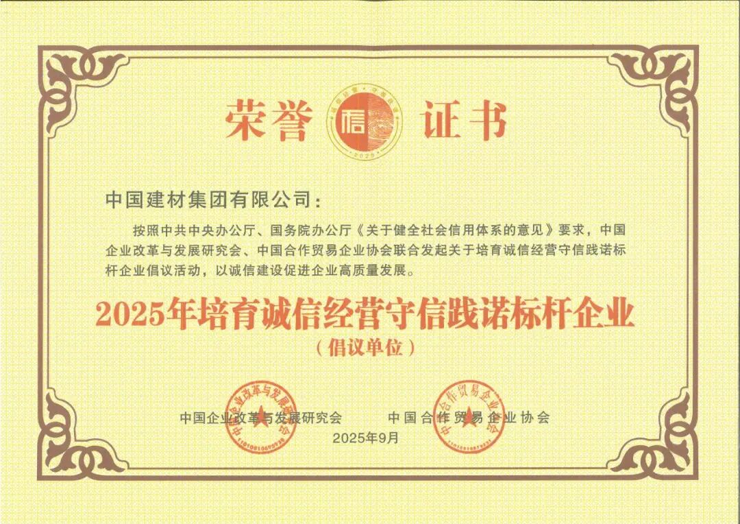 来源:集团法律合规部 发布时间:2025-10-099月27日,中国企业改革与发展研究会、中国合作贸易企业协会主办的“2025年企业诚信建设高质量发展大会”在福州举行。bet3365官方亚洲版集团入选“2025年培育诚信经营守信践诺标杆企业倡议单位”,集团所属中材节能股份有限公司、北新嘉宝莉涂料集团股份有限公司、山东瑞泰盖泽工程有限公司的案例荣获“2025年企业诚信管理典型案例”。