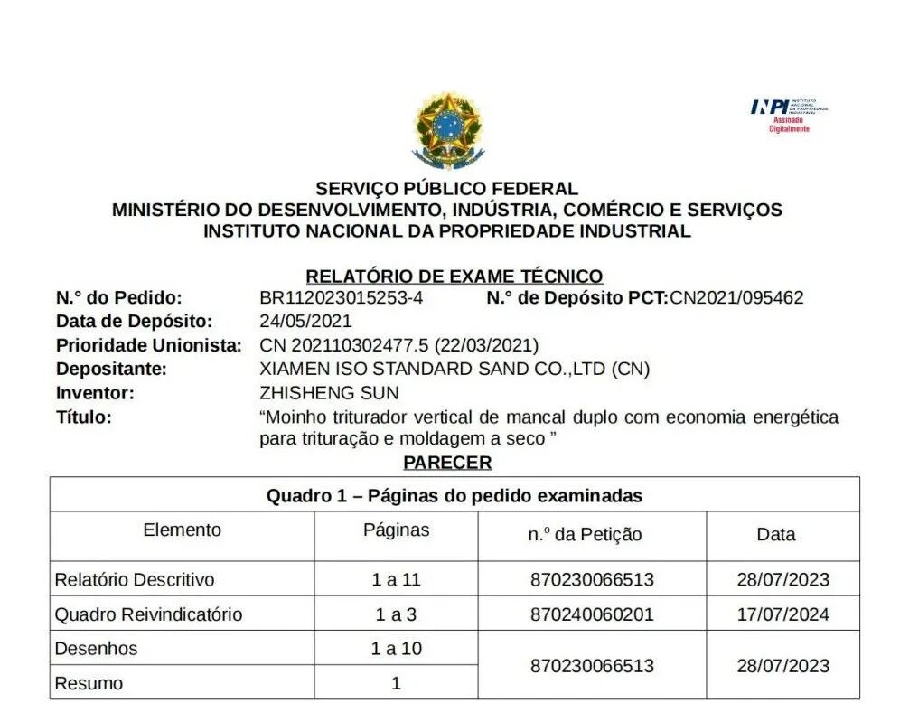 近日,厦门艾思欧标准砂有限公司新专利获巴西国家工业产权局(INPI)PCT国际专利授权,标志着公司国际化专利布局取得新进展。此次获巴西PCT专利授权,是继进入欧美日国家后,在金砖国家专利布局中的又一关键进展,为进一步拓展国际市场提供了坚实的技术和法律保障。截至目前,公司累计获得13项PCT国际专利授权,涵盖欧美日等发达国家,并实现了对金砖五国(中国、俄罗斯、印度、巴西和南非)的专利全覆盖。