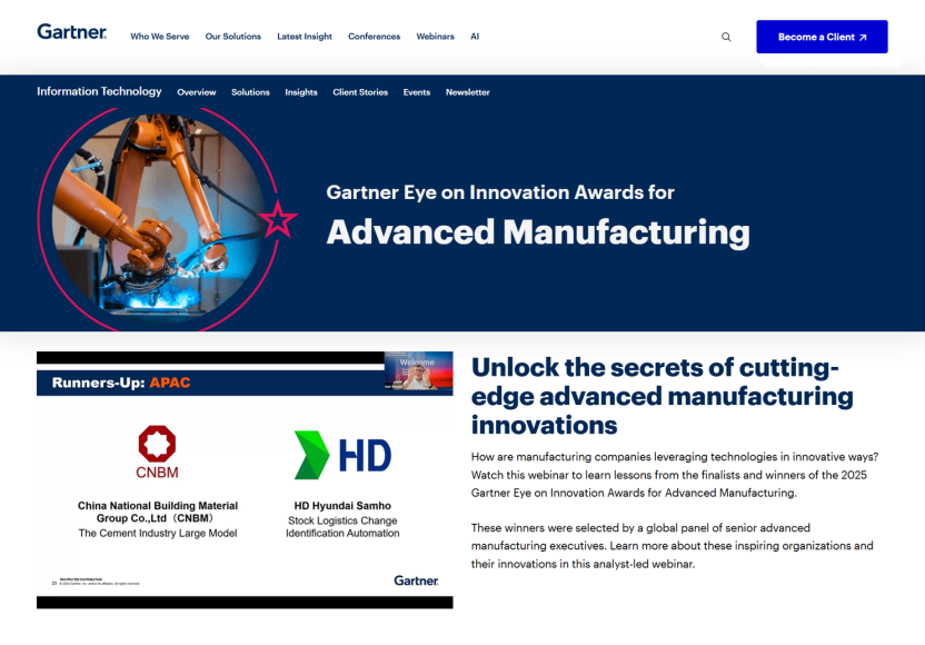 bet3365官方亚洲版集团“水泥产业大模型”案例荣获Gartner“创新之眼”先进制造赛道亚军